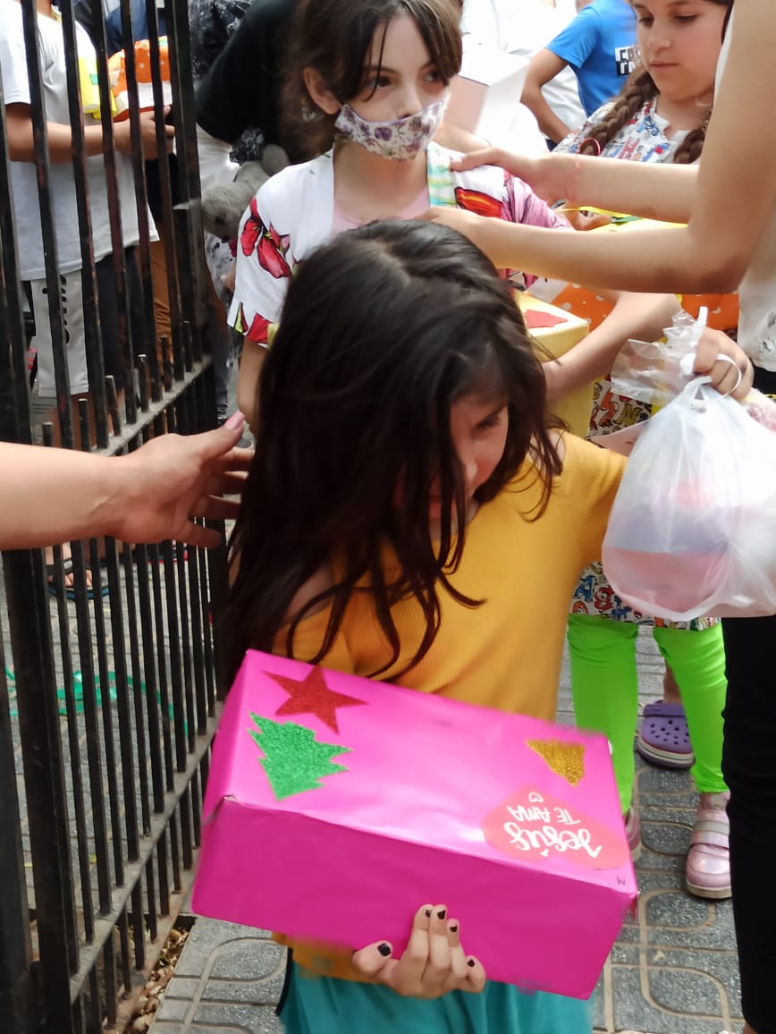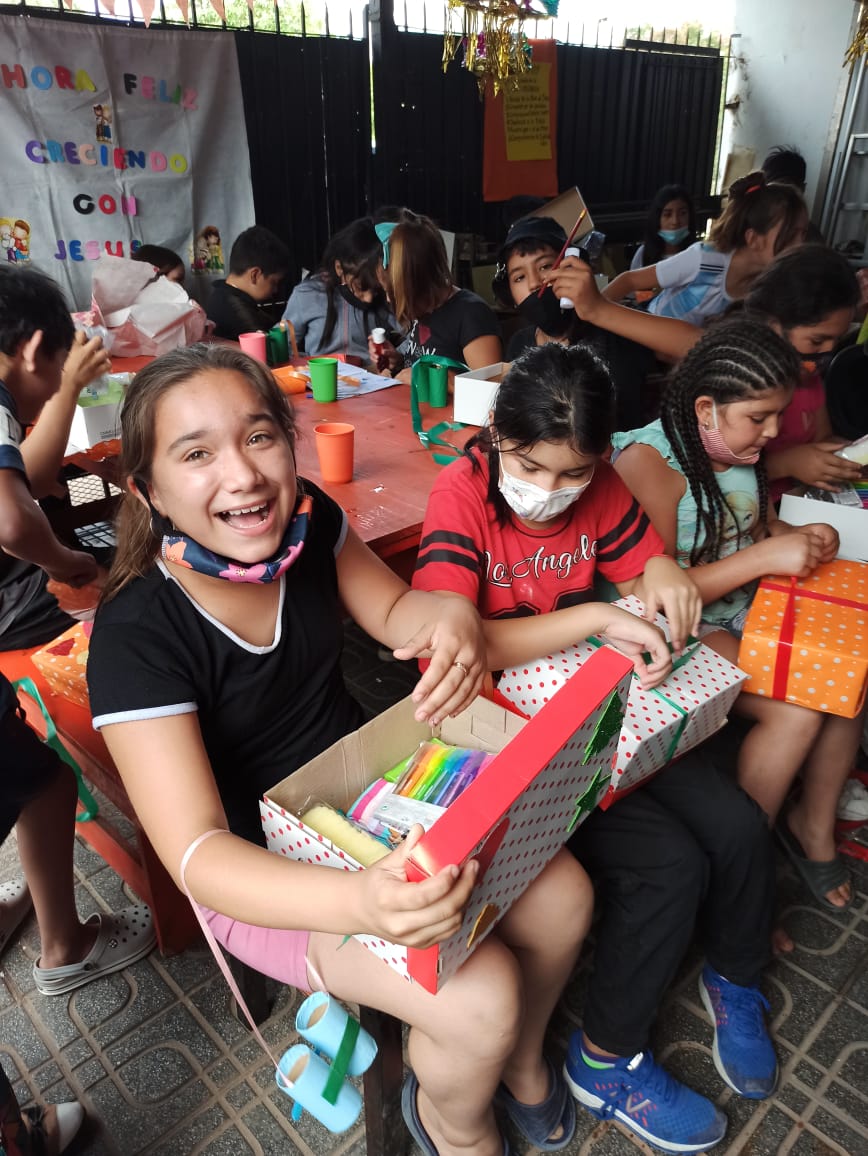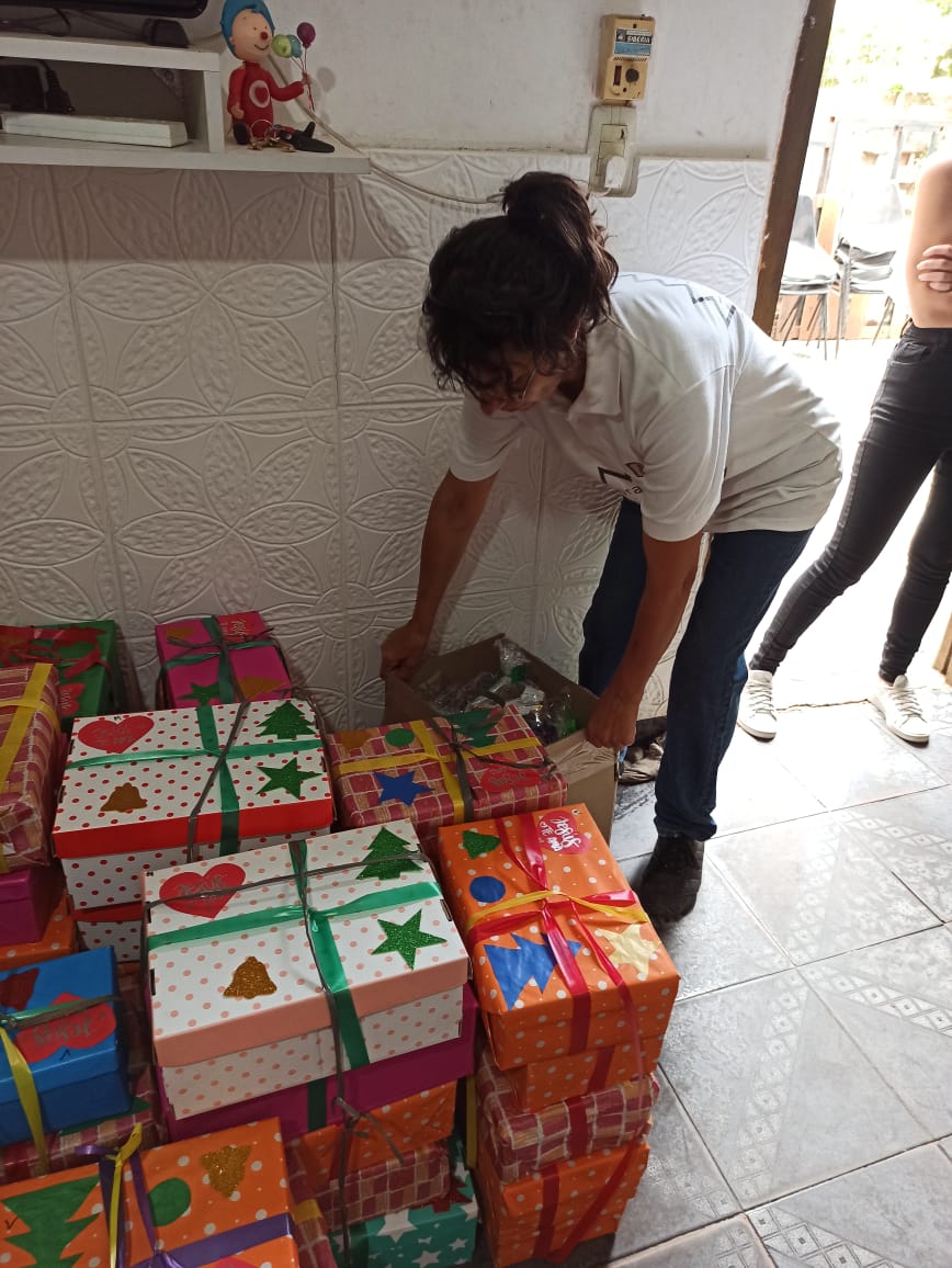 El objetivo fue bendecir a los niños de la horita feliz. Se repartieron 90 cajas de navidad a 90 niños.